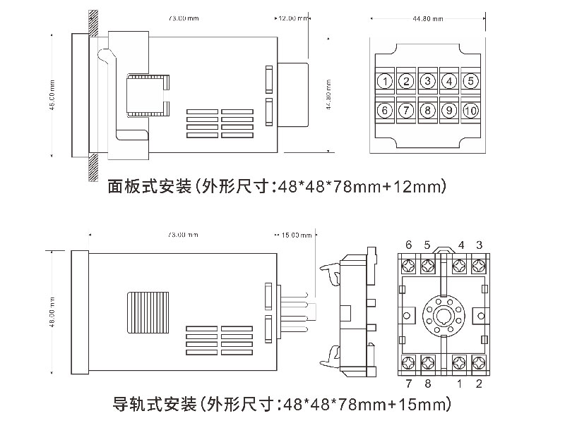安裝方式:面板開孔式或35mm導軌式