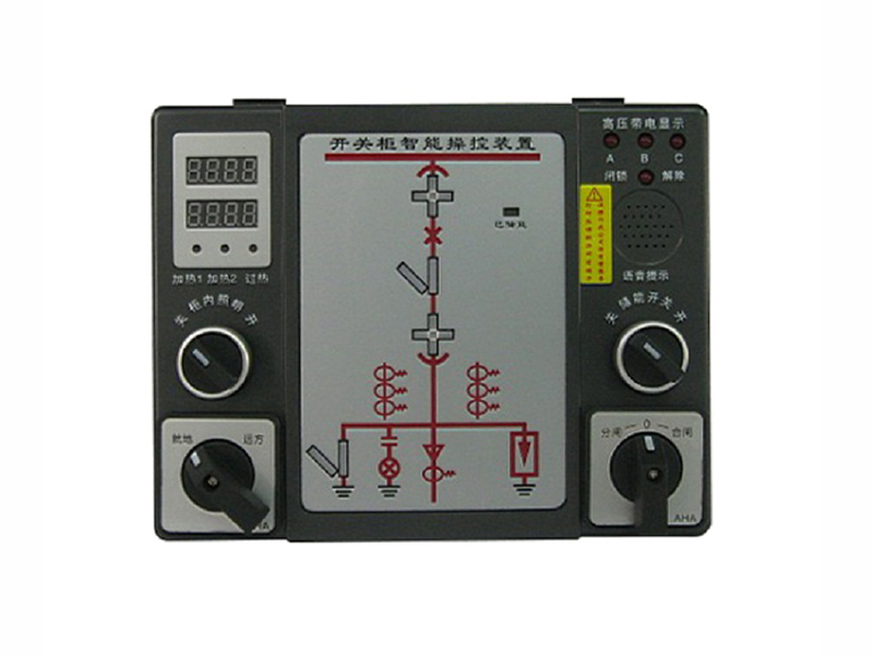 智能操控裝置具有一次回路模擬圖及開關狀態指示,高壓帶電顯示,自動溫濕度控制,人體感應自動照明,語音提示,電參數測量及RS485通訊接口等眾多功能,集操作、顯示于一體。